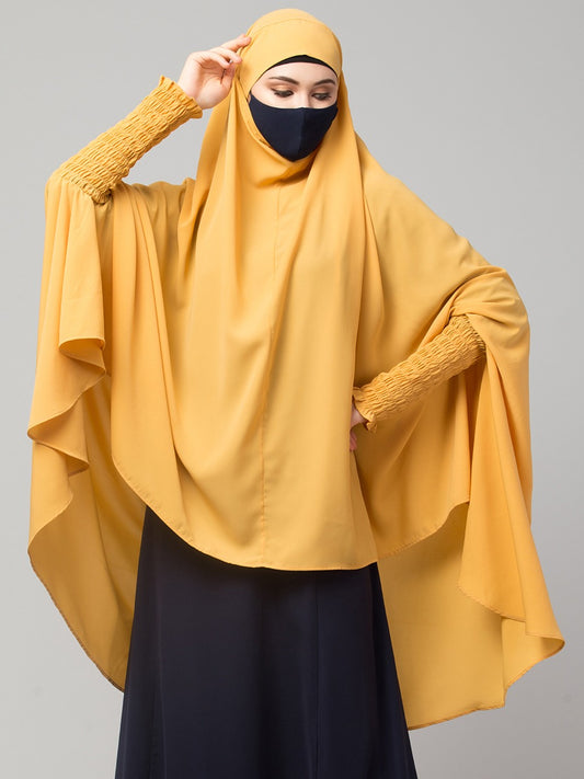 Bashariya Sand Color Long Prayer Khimar Hijab with Attached Mouthpiece|Short Jilbab