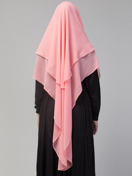 Bashariya Pink Color Two-Layer Triangle Prayer Khimar Hijab with Attached Mouthpiece