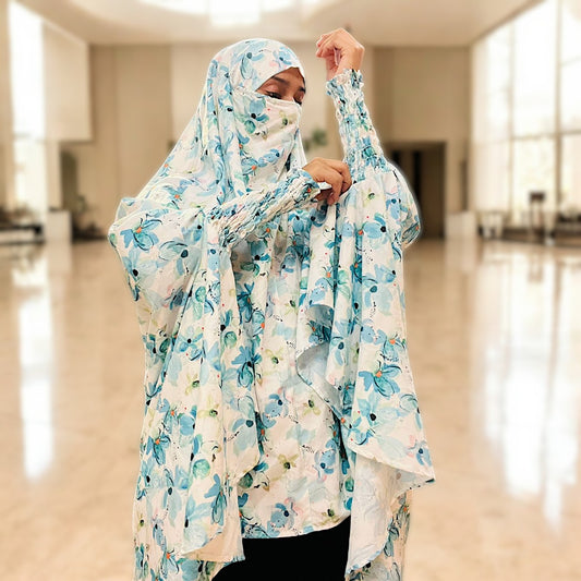 Printed Khimar-Long Prayer Hijab With Attached Mouth-Piece