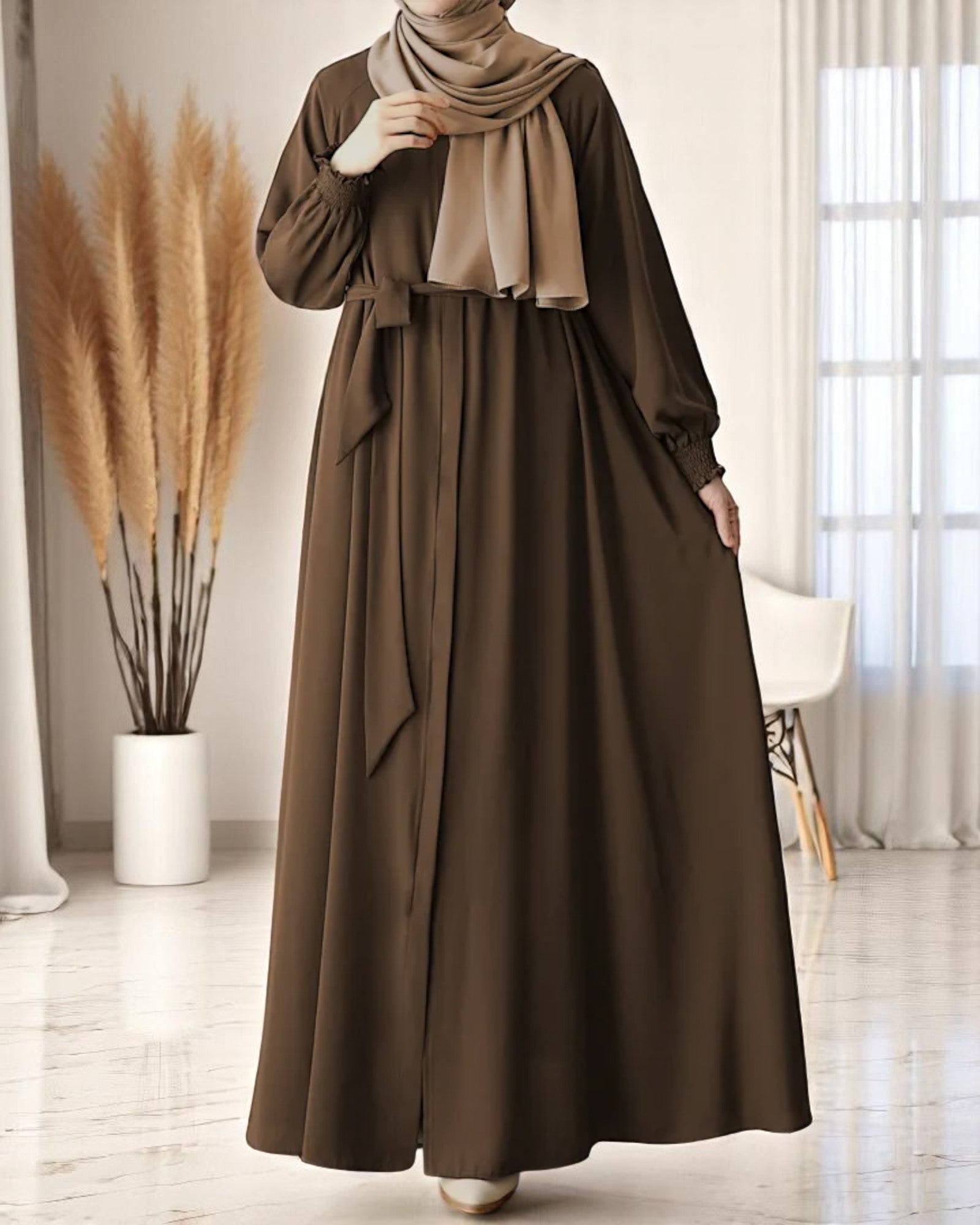 Coordinated Look: Comes with a matching belt to cinch the waist and a complementary hijab for a complete ensemble.