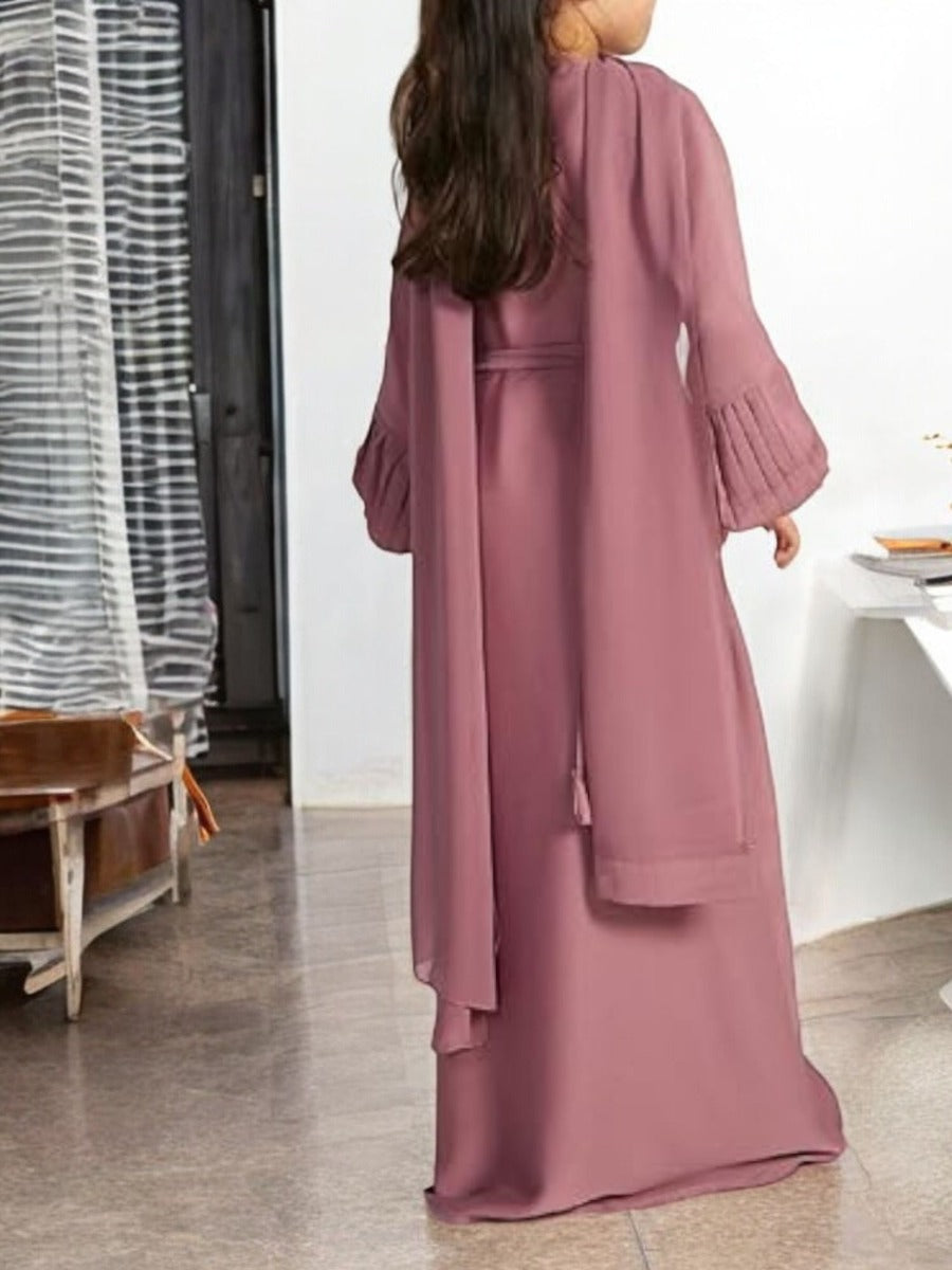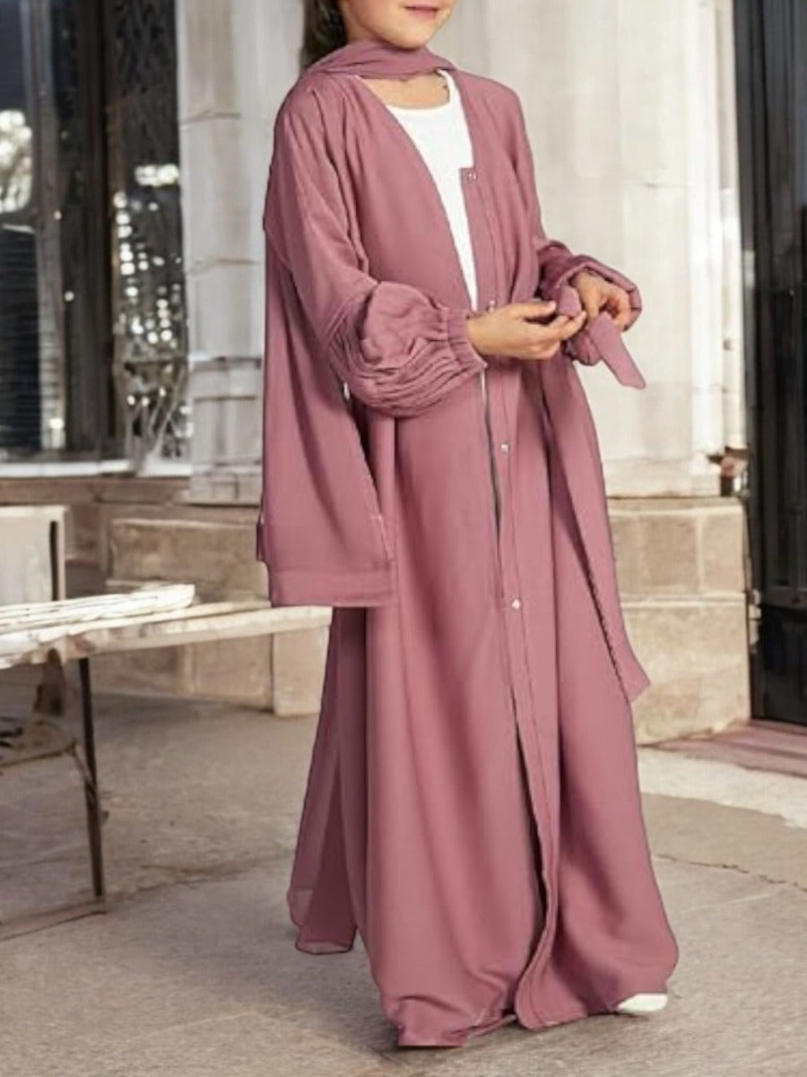 Three-Piece Abaya Set with Cardigan, Hijab, and Belt