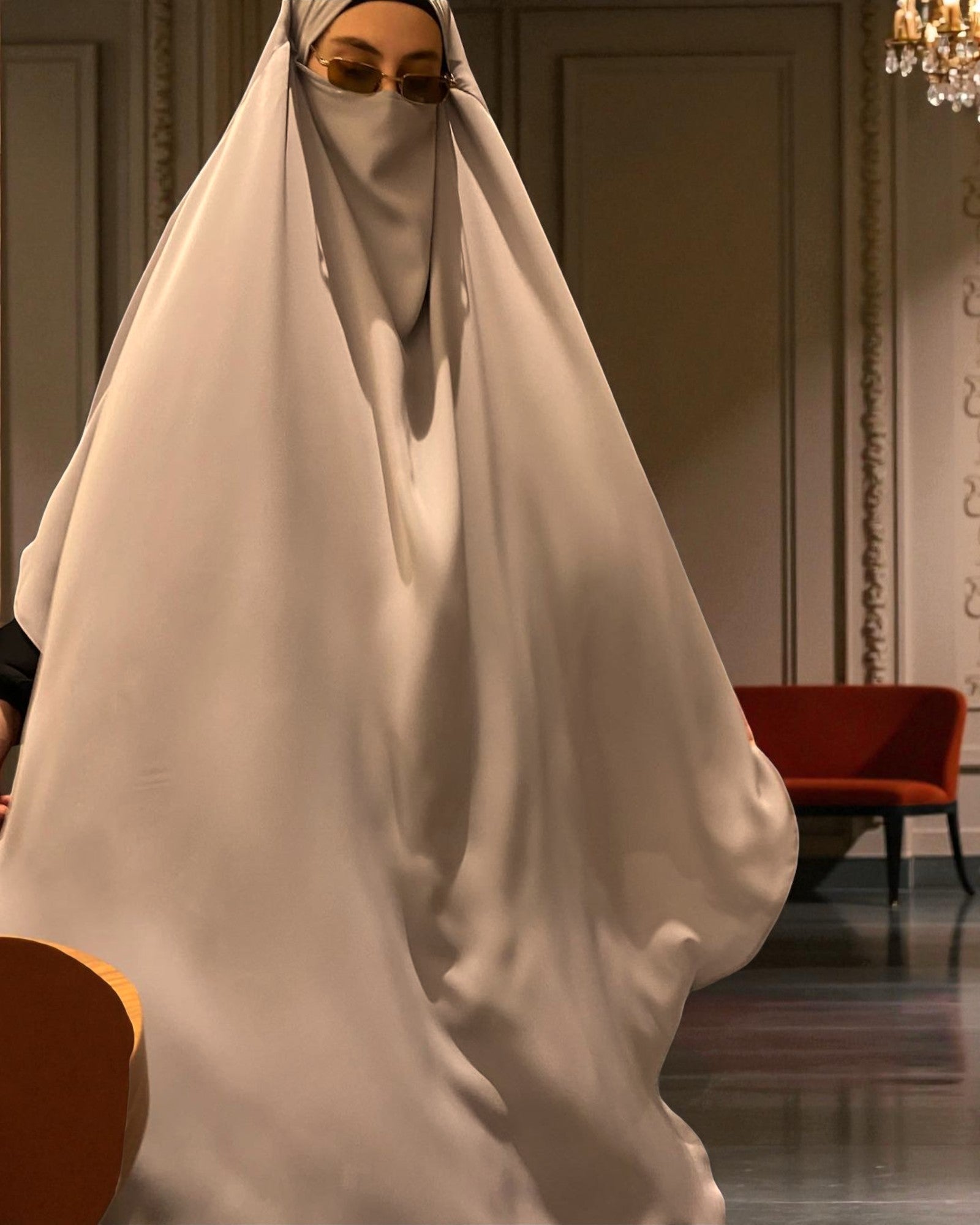 Presenting our sophisticated Two-Piece Abaya Jilbab Set, featuring an inner abaya crafted from luxurious Firdaus fabric. Paired with a long khimar made from elegant diamond georgette fabric, this set ensures both style and comfort. The khimar comes with pre-sewn ribbons, allowing you to easily open or hide your face for versatile wear. This set is perfect for any occasion, combining practicality with modest elegance.