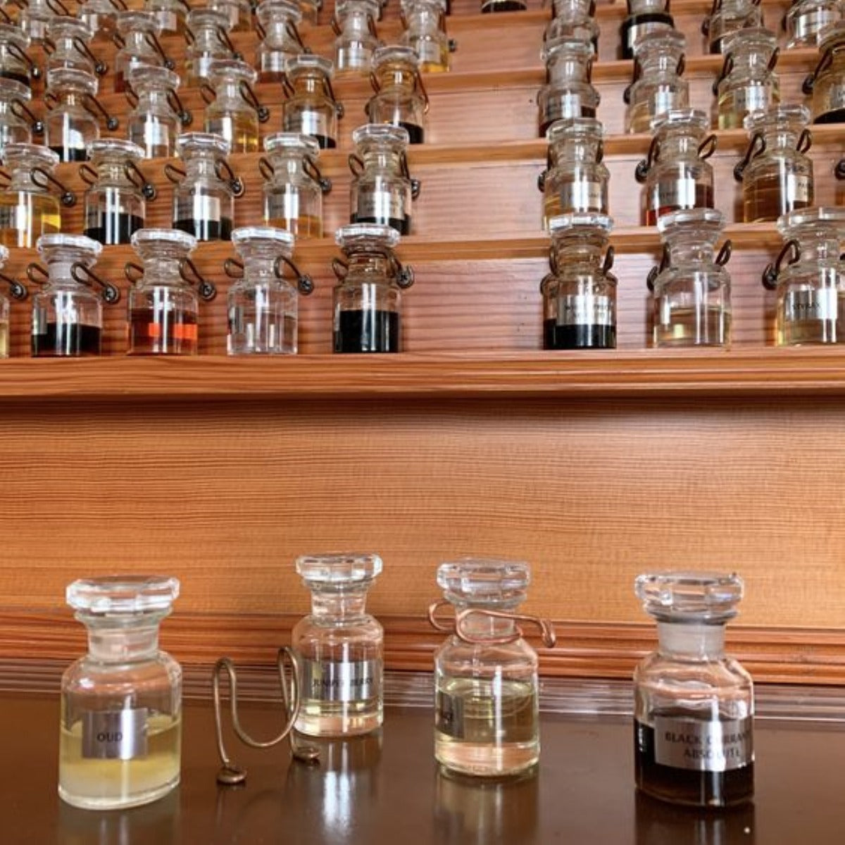 • Take one or more drops of the perfume oil into the palm of the hand or the inner wrist and gently rub the palms together.
