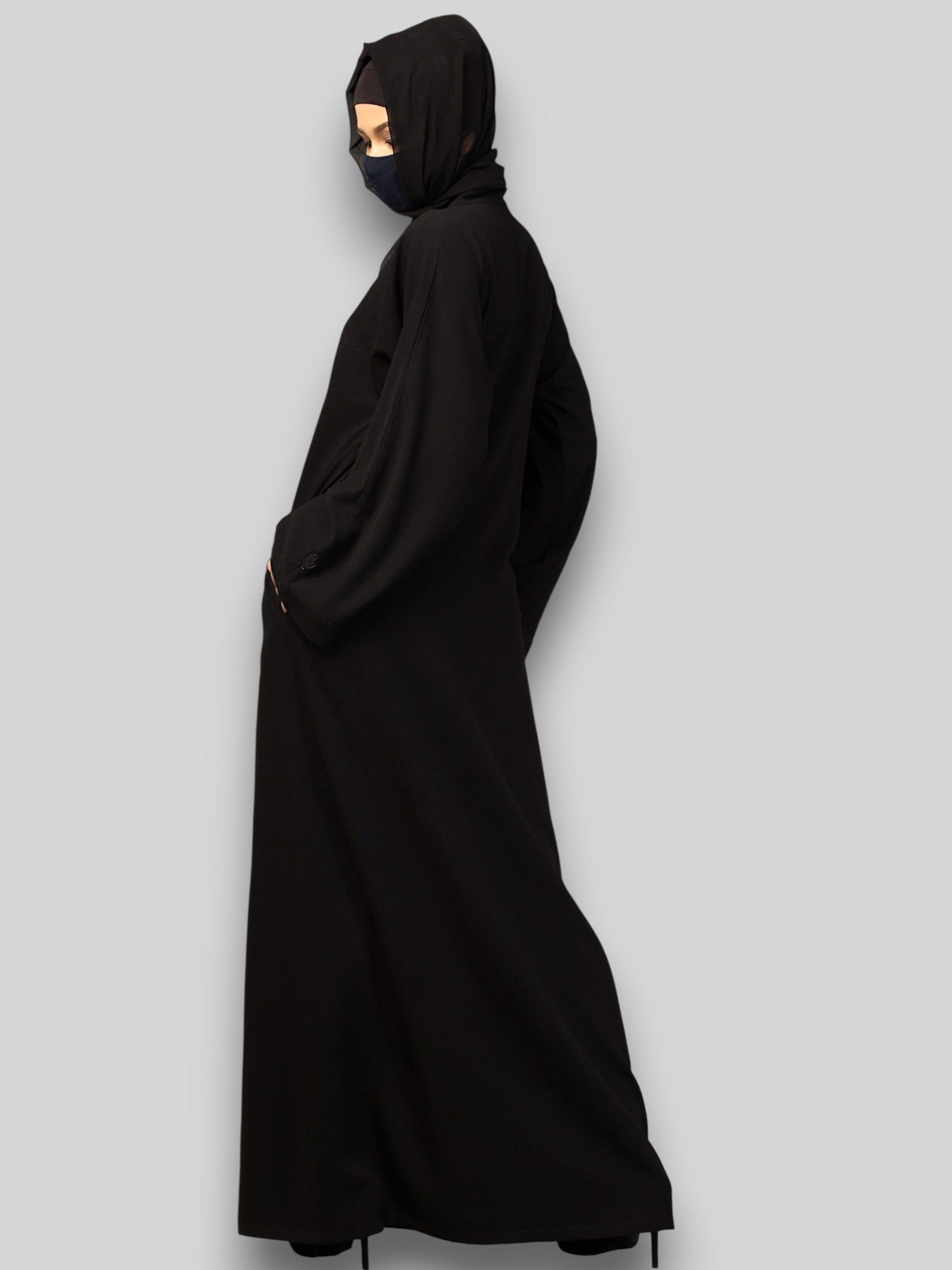 A timeless Black abaya with Handwork that combines superior craftsmanship with functional design—ideal for elevating your modest wardrobe effortlessly.