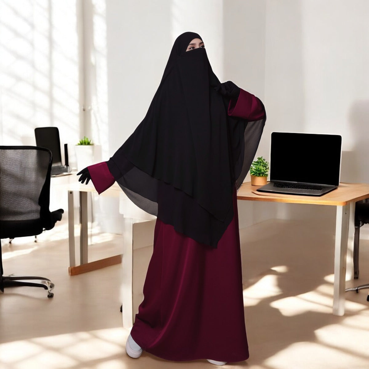 Three-Layer Triangle Design: Offers complete coverage while ensuring a graceful and flattering drape, enhancing your modest style with ease.