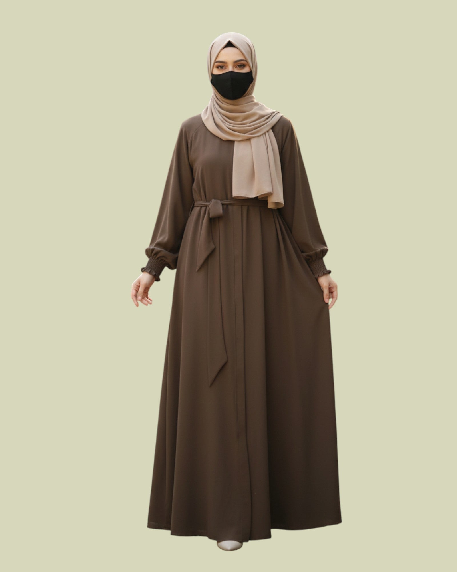 Coordinated Look: Comes with a matching belt to cinch the waist and a complementary hijab for a complete ensemble.