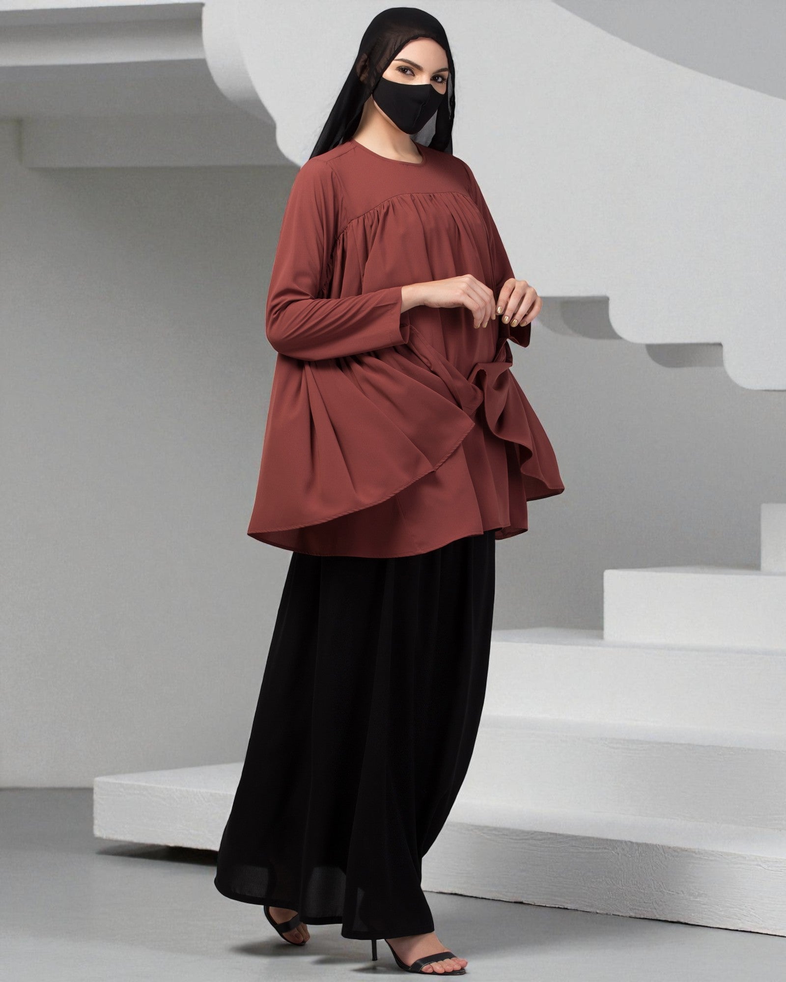 Modest Co-ord Set with Designer Loose-Fit Top and Flared Skirt.