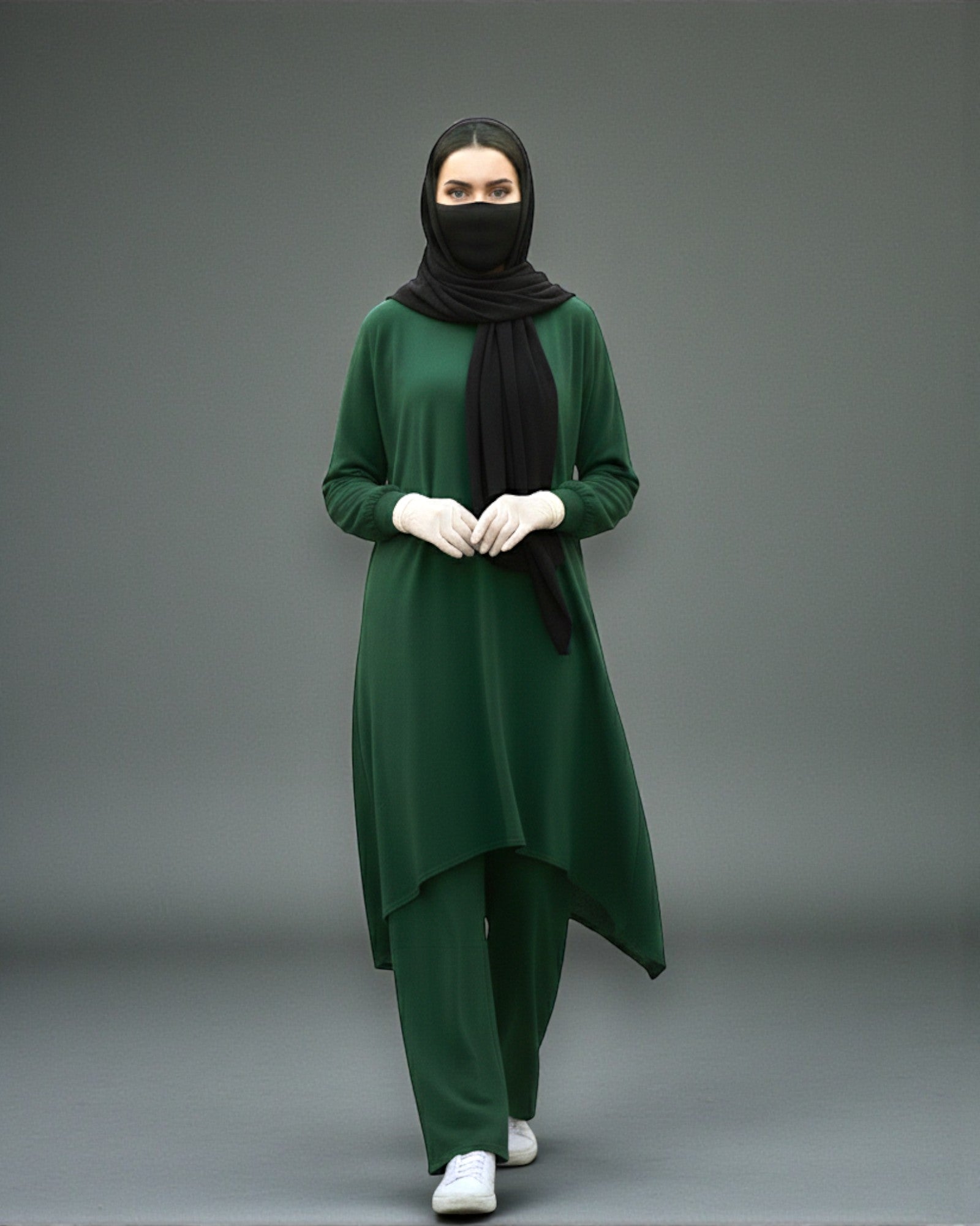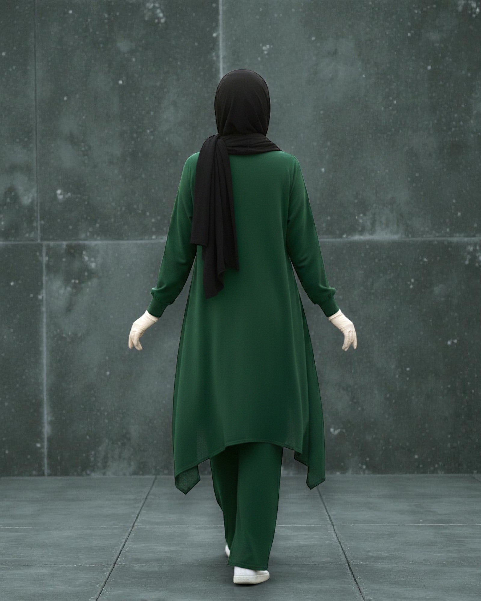 This premium co-ord set for women is crafted in smooth, lightweight Firdaus fabric, featuring an elegant asymmetric tunic that flows beautifully over straight-fit pants for a refined modest silhouette. Designed with soft cuff sleeves for added structure and comfort, the set drapes effortlessly while allowing ease of movement throughout the day. Finished with a coordinated stole hijab, this ensemble blends contemporary style with timeless modest wear β perfect for everyday elegance, travel, and elevated casual occasions.