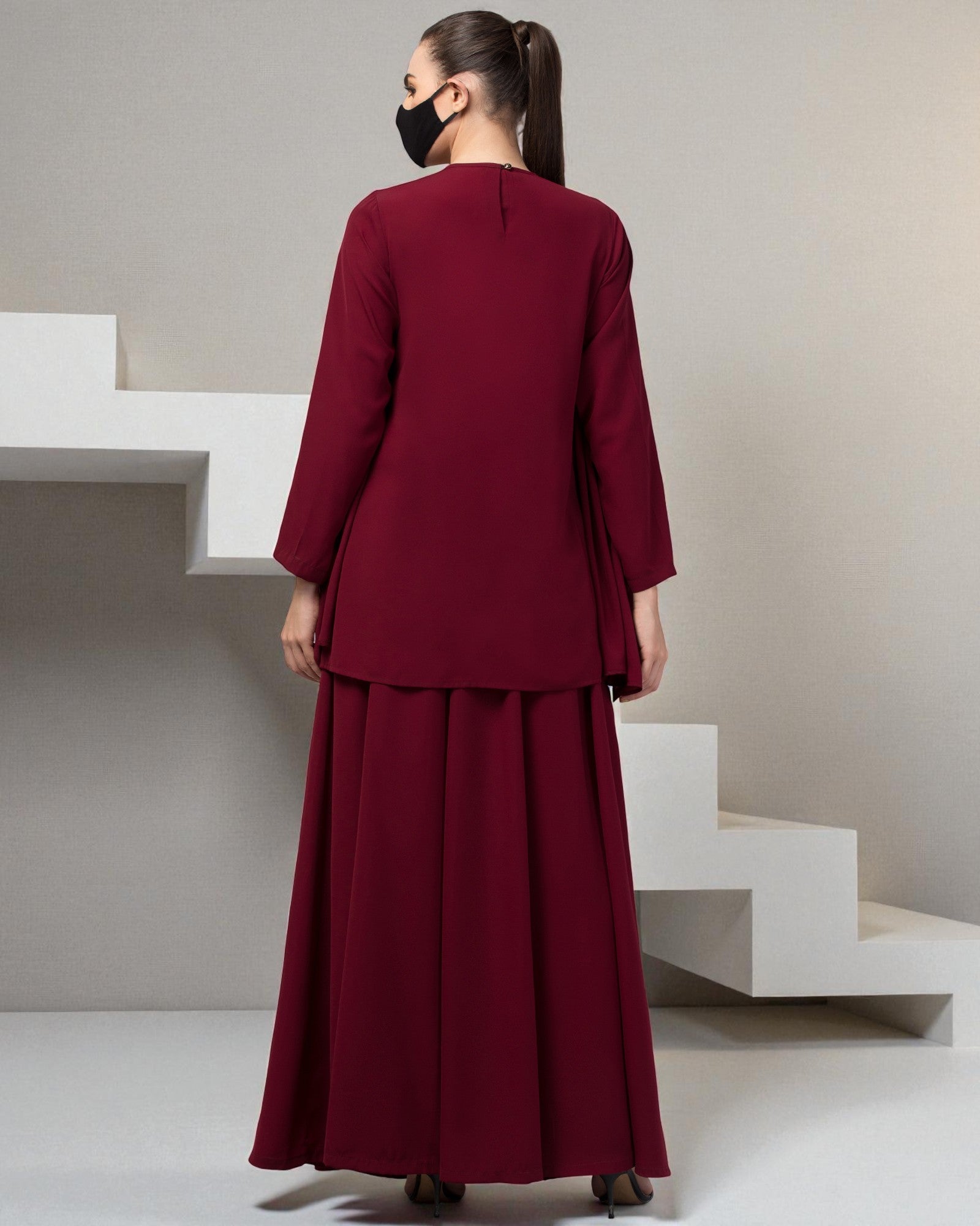 Modest Co-ord Set with Designer Loose-Fit Top and Flared Skirt.