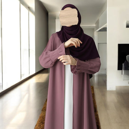 Elegant Three-Piece Abaya Set with Coat-Style Shrug