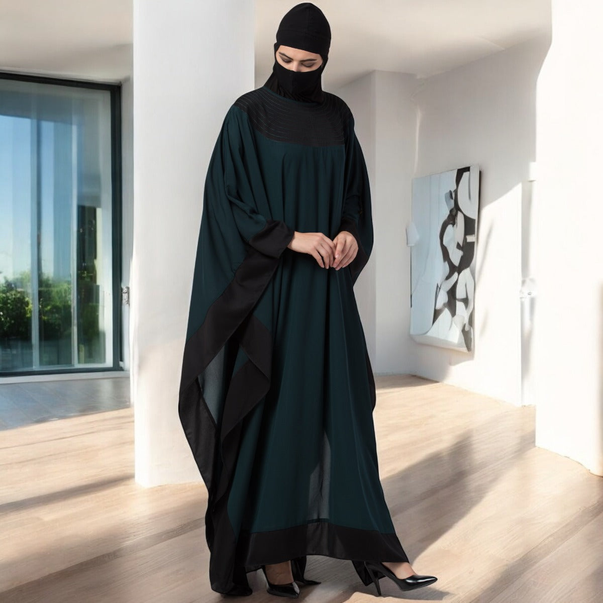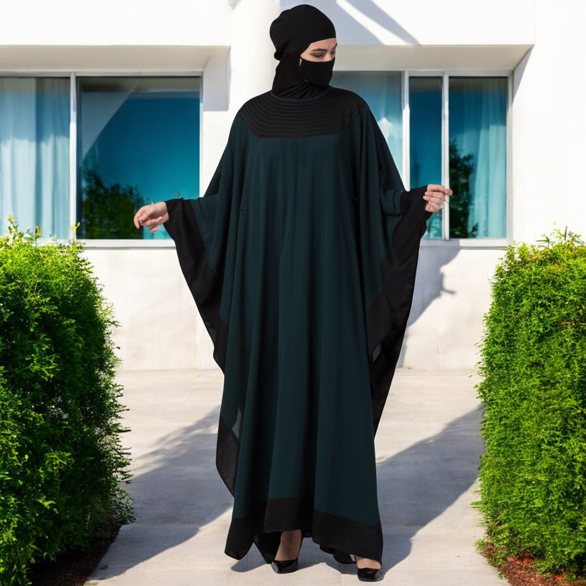 Bashariya-Very elegant Kaftan in dual color. Black Patch on yoke with Green Thread contrast further beautifies the garment.