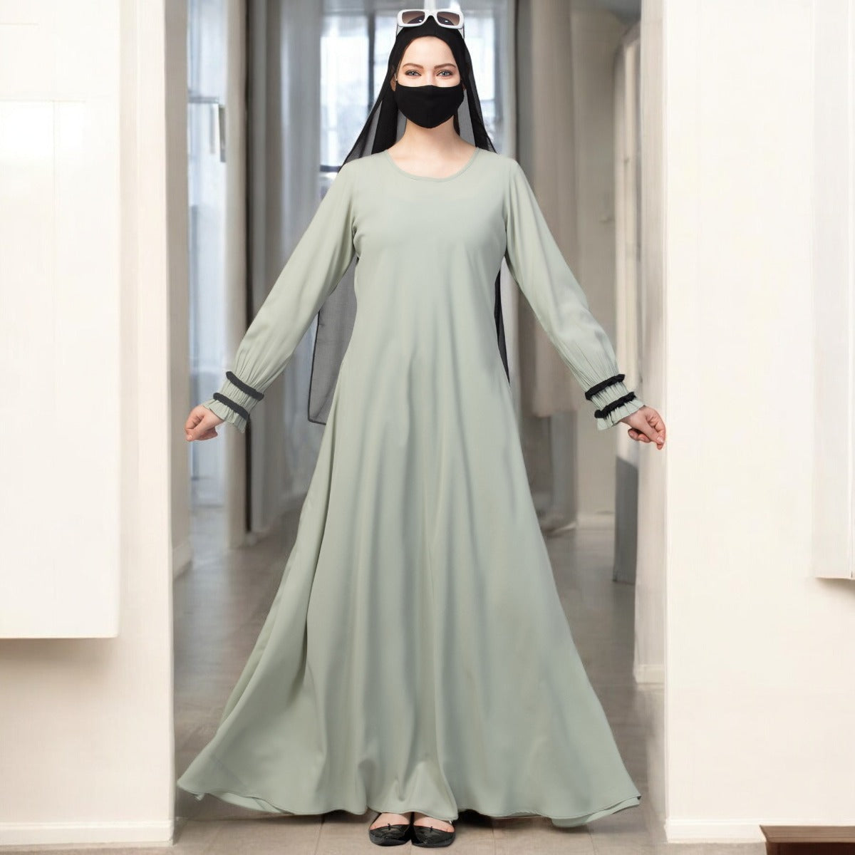 A lovely vintage-looking abaya dress with pockets on either side. It has designer cuffs with black trims.