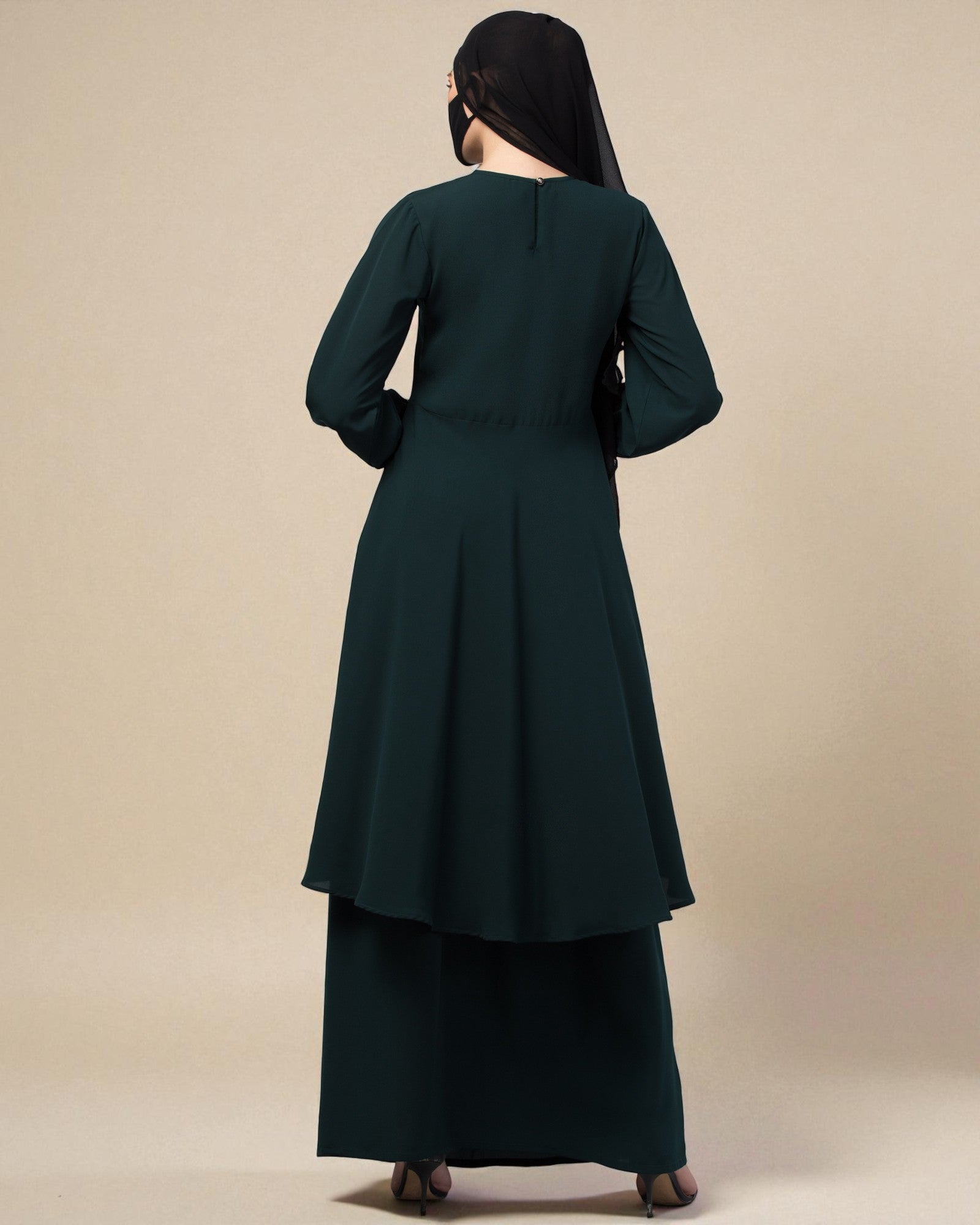 Presenting our Modest Co-ord Set, featuring a Loose-Fit Long Top with Elasticated Sleeves and a Flared Skirt, ideal for students and working women. This versatile set offers both style and comfort effortlessly.